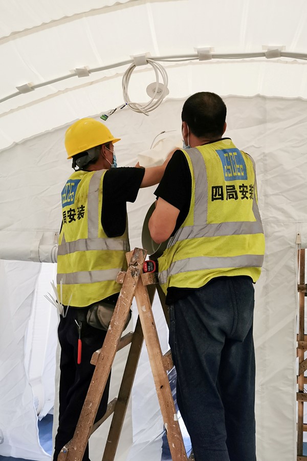 收到消息后,中建四局安裝公司立即派水電工人前往支援,從凌晨3:00至中午12:00,用十個小時,幫助“火眼”核酸檢測實驗室成功落地。
