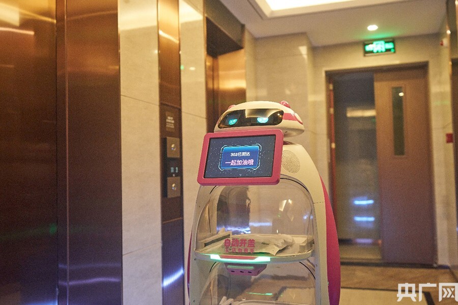 名為“蠶豆”的配送機(jī)器人具有智能地圖導(dǎo)航及避障、搭乘電梯、跑腿送物等多重功能,讓封閉管理的居民在自家門(mén)口即可實(shí)現(xiàn)全程無(wú)接觸式取餐取物。