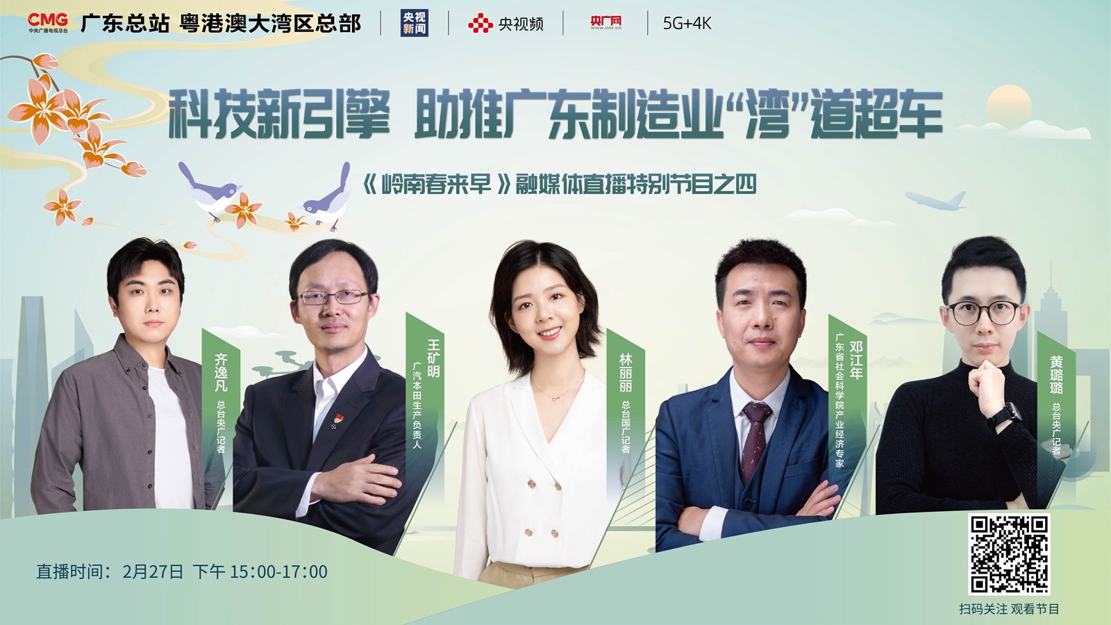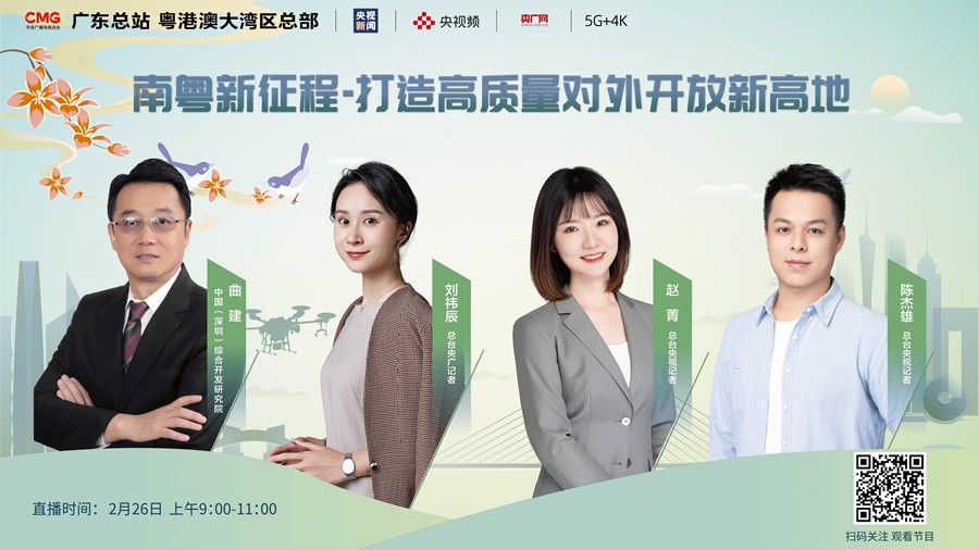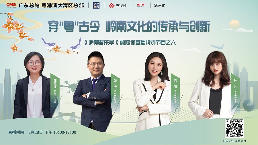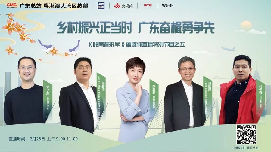 2月26日至2月28日,中央廣播電視總臺廣東總站暨粵港澳大灣區(qū)總部推出六期融媒體直播特別節(jié)目《嶺南春來早》,通過央視新聞、央廣網(wǎng)、央視頻等總臺新媒體平臺,展現(xiàn)廣東在開局之年主動作為的奮戰(zhàn)場面。