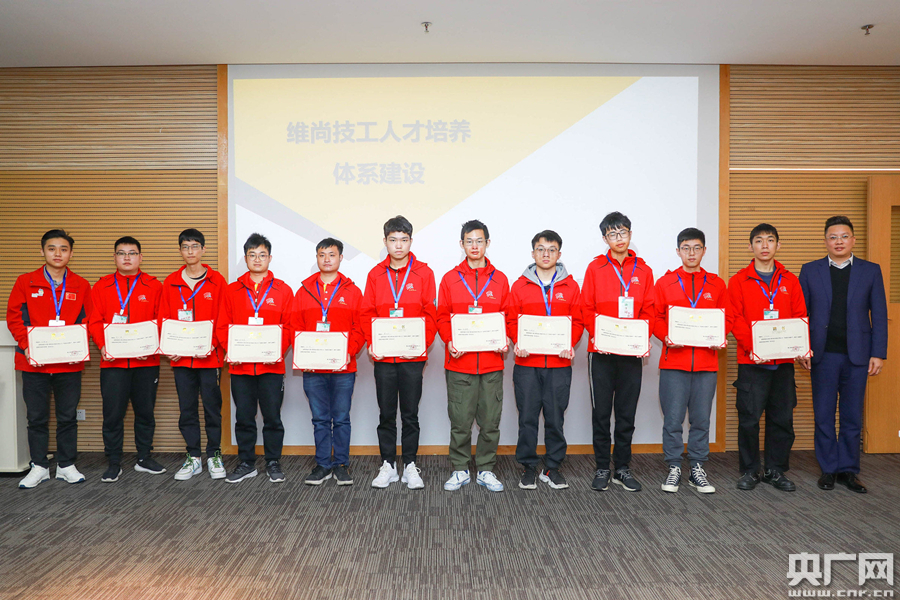 維尚向到訪的年輕工匠們頒發(fā)“高級技術顧問”聘書(央廣網(wǎng)發(fā))
