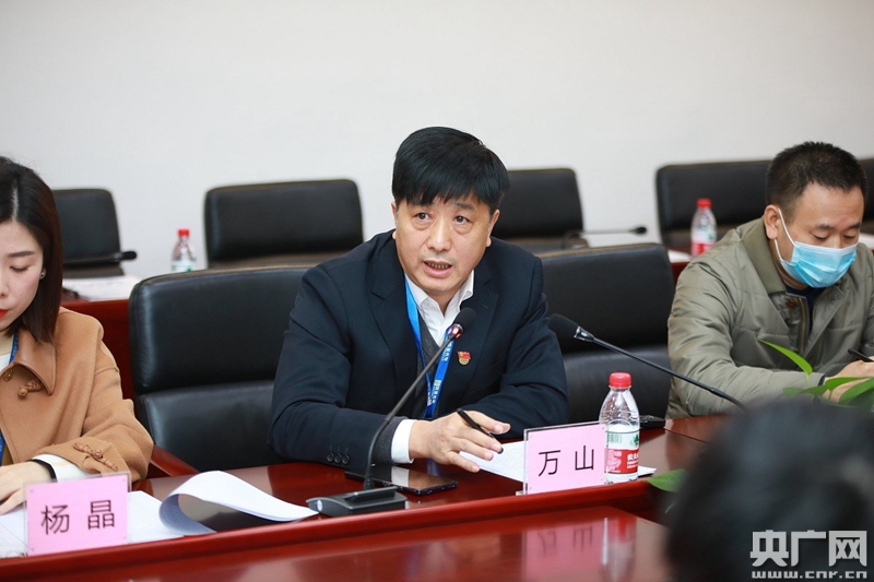 國(guó)星光電黨委副書記、工會(huì)主席萬(wàn)山與國(guó)賽選手互動(dòng)。(央廣網(wǎng)發(fā))