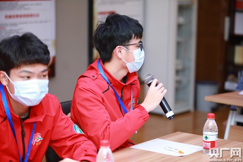 第一屆全國技能大賽云計算項目冠軍陳新源提問。(央廣網(wǎng)發(fā))