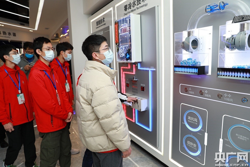 國賽選手參觀萬和電氣的智能化展廳。(央廣網(wǎng)發(fā))