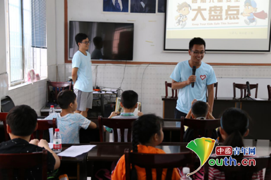 山師大研支團開展留守兒童暑期安全講座,圖為“暑假安全小常識”講解現(xiàn)場。程永建 供圖