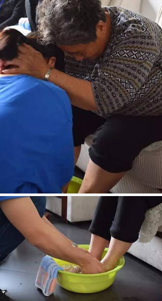 美國布法羅紐約州立大學中國校友為幸福9號老人洗腳