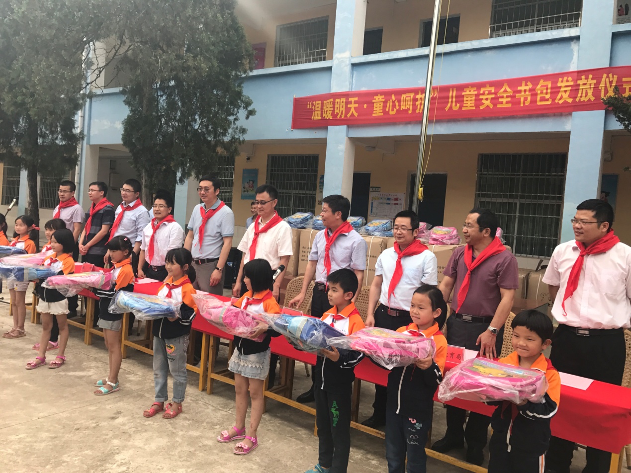 “溫暖明天·童心呵護(hù)”活動現(xiàn)場向孩子們發(fā)放兒童安全書包