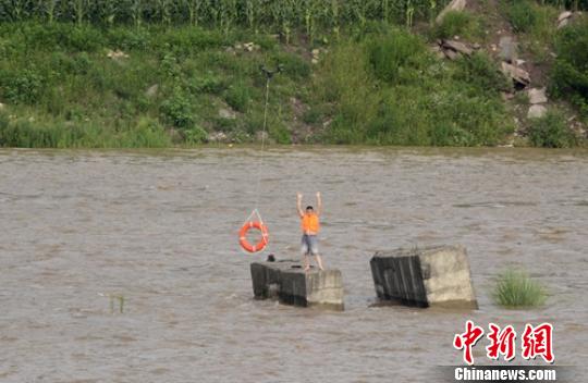 接到報(bào)警后,當(dāng)?shù)叵拦俦杆仝s到事故現(xiàn)場,經(jīng)偵查發(fā)現(xiàn)釣魚者被困在攔水壩石墩旁,距岸邊大約有150米,四周洪水湍急,隨時(shí)危及被困者生命。