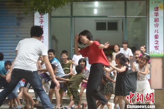 孩子們?cè)诹羰貎和液嫌啊!$妼W(xué)滿 攝