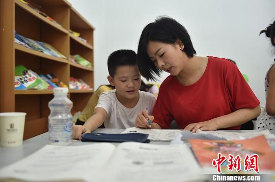 老師在幫孩子補(bǔ)習(xí)文化課。 鐘學(xué)滿 攝