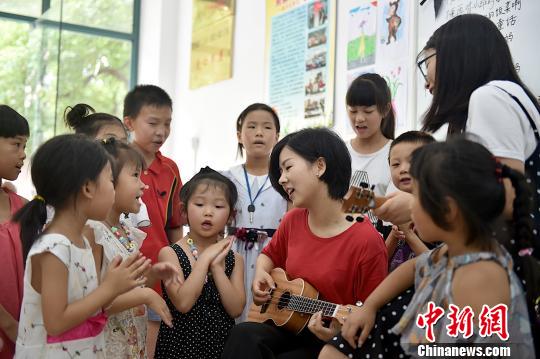 老師在教職工子女學(xué)習(xí)吉他!$妼W(xué)滿 攝