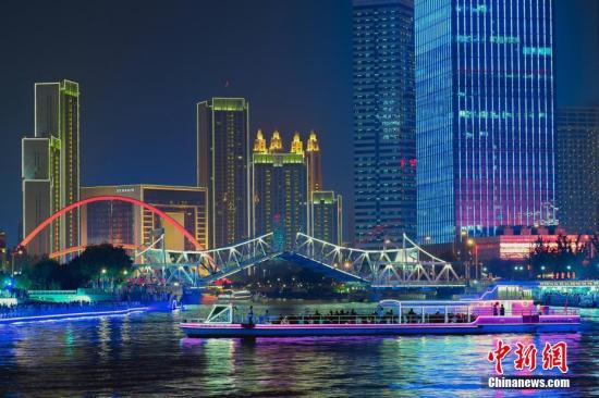 8月17日晚,第十三屆全運(yùn)會(huì)即將開(kāi)幕,“點(diǎn)亮海河”活動(dòng)在天津海河兩畔的進(jìn)行了彩排、預(yù)演。 中新社記者 佟郁 攝
