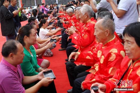 資料圖:86對老人聚集在一起圍成巨型同心圓慶祝金婚。中新社記者 王中舉 攝