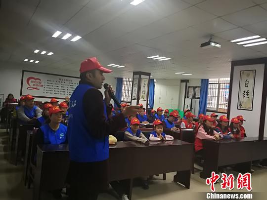 可漢正在給其他義工做培訓!±鋵W先 攝