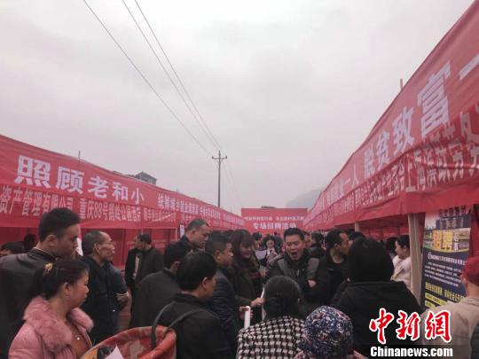 圖為在重慶彭水縣普子鎮(zhèn)舉辦的招聘會人流如織!⌒z