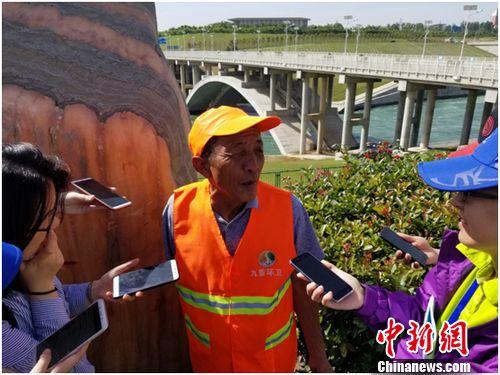 5月28日,記者跟隨“水到渠成共發(fā)展”網(wǎng)絡(luò)主題活動(dòng)一行走進(jìn)河南南陽,見到了李進(jìn)群老人。他皮膚黝黑,穿著一件橘色馬甲,左手拿著一個(gè)塑料桶和一把專門用來撿拾垃圾的火鉗。他告訴記者,一年365天,他差不多有300天都要在壩區(qū)周圍轉(zhuǎn)一圈,撿垃圾,護(hù)樹木,路壞了修路,橋壞了補(bǔ)橋。如果遇到往水庫里扔垃圾的游客,就上前制止!案蛇@些活兒沒有報(bào)酬,全憑自愿”,而且一堅(jiān)持,就是48年。