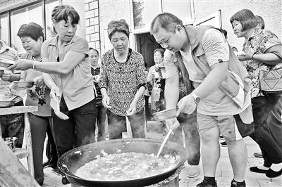 二臺子安置點是琉璃廟鎮(zhèn)最偏遠(yuǎn)的一個安置點,安置了65名受災(zāi)群眾。24日下午,村子停電了。臨近傍晚,安置在這兒的村民們變得不安起來,很多村民都提出,既然不下雨了能不能讓他們回家。但是天氣預(yù)報說24日晚上還會有雨,村支書就勸導(dǎo)村民們再堅持一晚上。喻鑫是二臺子村的“突擊隊”小隊長,他從村支書那里得知村民們愛好扭秧歌,就建議在吃完晚飯后組織一個扭秧歌的節(jié)目,村民們都爭先參加,志愿者們也借來了大鼓,現(xiàn)學(xué)現(xiàn)賣,跟著節(jié)拍打起了鼓點。那一晚,村民們沒有慌亂,在燭光和雨聲里睡著了。本組文/本報記者 劉婧