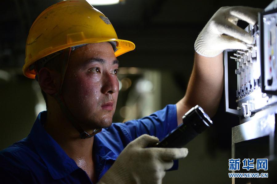 7月24日,西安鐵路局新豐鎮(zhèn)機(jī)務(wù)段機(jī)車電工在檢查入庫機(jī)車電器。