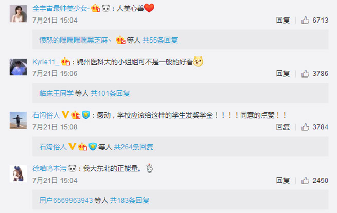 網(wǎng)友紛紛留言為丁慧點贊。網(wǎng)友“-城南舊夢”留言,女生人美心善,很溫暖。網(wǎng)友“ZCB張弛斌”留言,最美醫(yī)學生。(孟植良)
