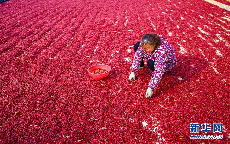 11月18日,在衡水市冀州區(qū)周村鎮(zhèn)辣椒加工交易基地,椒農在對摘好的辣椒進行二次篩選。