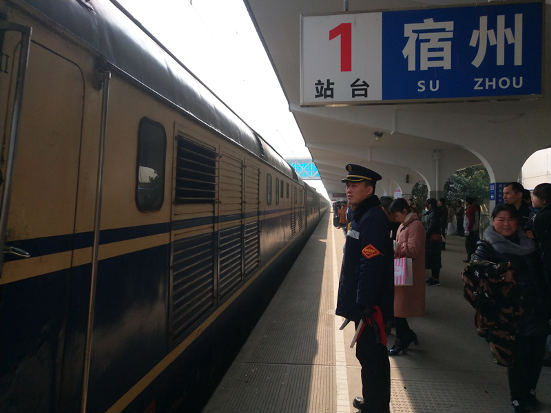 老魏叫魏宗富,是宿州站的一名客運員,去年從新河站的一名車站值班員轉(zhuǎn)干客運員,主要負責站臺旅客的乘降組織,雖然是新來的,但軍人的本色加上多年的行車工作經(jīng)驗,干起客運工作來,卻非常認真和嚴格。