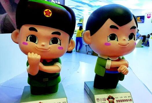 2018年5月舉辦的文博會上,一組“雷小鋒”文創(chuàng)人偶走紅湖南館。(新華社記者高文成攝)