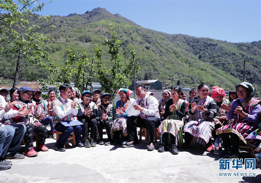 4月11日,云南省貢山縣獨龍江鄉(xiāng)干部群眾一同宣讀學(xué)習(xí)習(xí)近平總書記的回信。