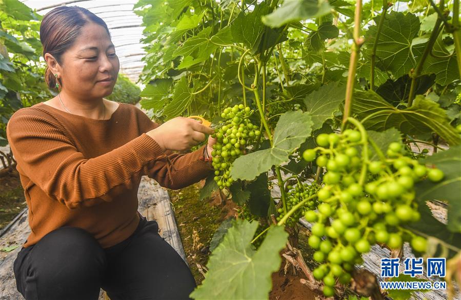 4月24日,河北省棗強縣唐林鎮(zhèn)李進伯村的農(nóng)民給葡萄疏果。