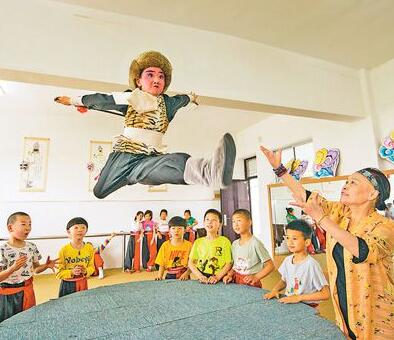 5月25日,江蘇海安市城東鎮(zhèn)西場小學(xué)的學(xué)生在練習(xí)京劇基本功。西場小學(xué)聘請(qǐng)南通市藝術(shù)劇院老師進(jìn)行專業(yè)輔導(dǎo),以“熟悉京劇、尊重藝術(shù)、傳承文化、提高修養(yǎng)”為目標(biāo),精心打造“和潤京韻”特色課程。