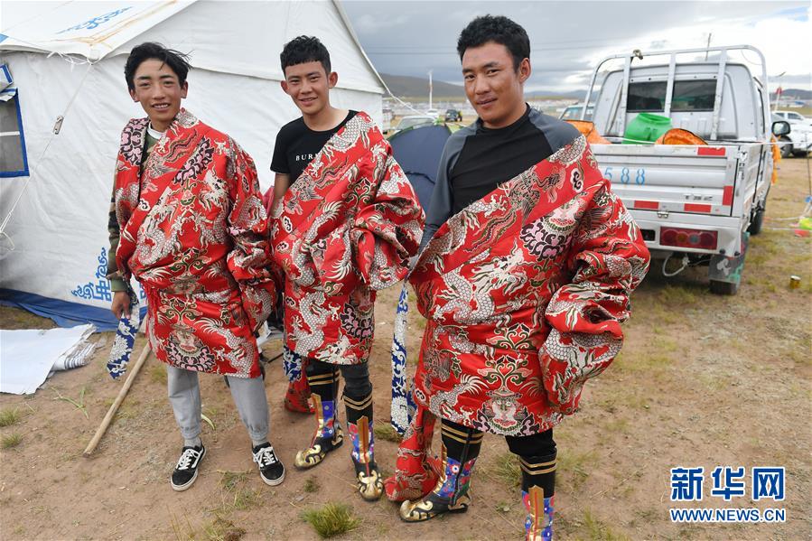 9月12日,藏族牧民身著盛裝參加青海省玉樹藏族自治州曲麻萊縣的首屆“教育節(jié)”。