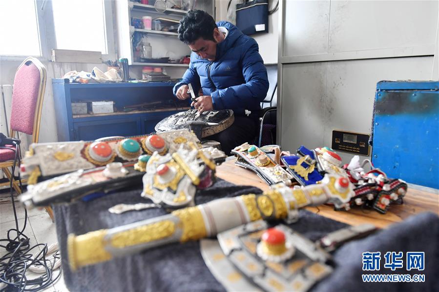9月12日,培訓(xùn)教師索南扎西在曲麻萊縣農(nóng)牧民創(chuàng)業(yè)指導(dǎo)服務(wù)中心的教室里加工手工藝品。