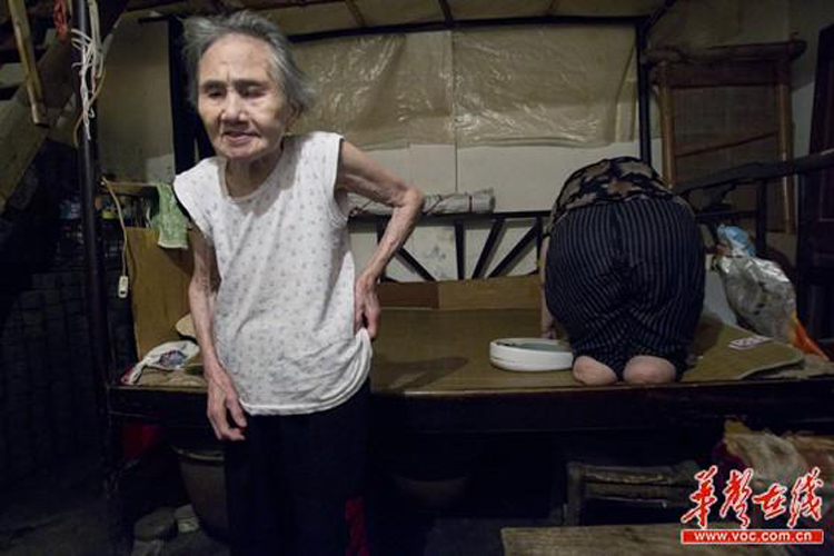楊玉輝母女倆的家,隱藏在長(zhǎng)沙繁華都市深處。在幸福橋社區(qū)住了近一個(gè)世紀(jì)的家里,九旬老人王仲蓮60年如一日地照顧重殘“無腳女兒”楊玉輝,用言行踐行母親責(zé)任、用一生書寫母愛光輝。60年來,王仲蓮的時(shí)間都是圍著女兒轉(zhuǎn)的,每天早晨,她起床第一件事就是幫女兒穿衣,洗臉,喂飯,圖為老人照顧女兒如廁,將坐便器放在床上。