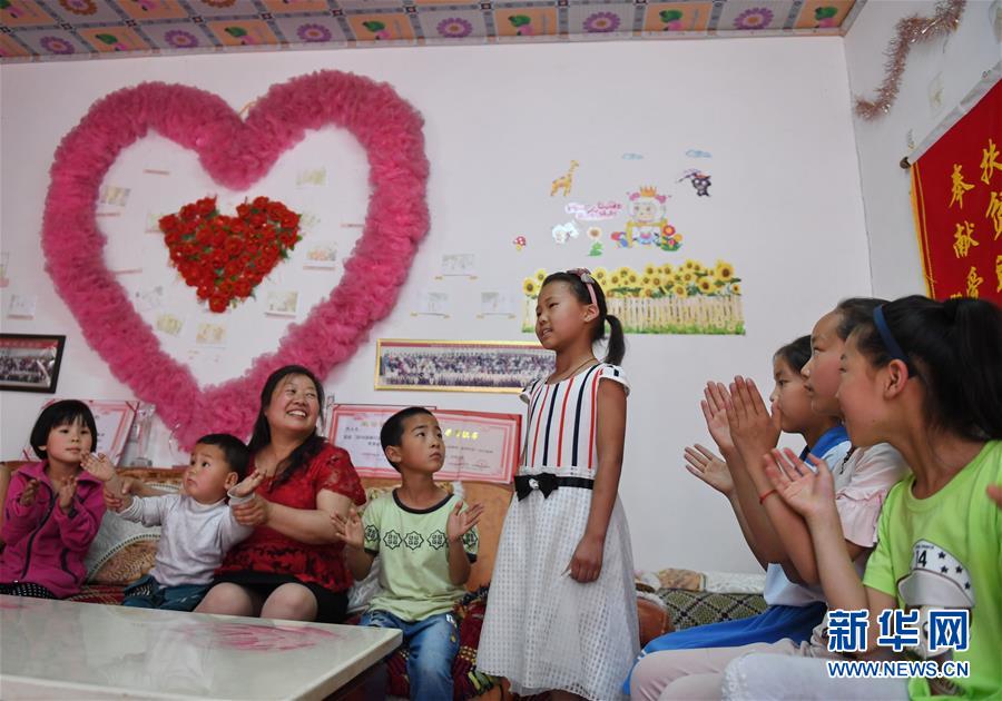 5月14日,孩子們?cè)凇皭?ài)心小屋”內(nèi)比賽唱歌,F(xiàn)年52歲的陳玉文是河北省磁縣講武城鎮(zhèn)學(xué)區(qū)的一名普通教師。為了讓更多的留守孤困兒童感受到“母愛(ài)”的溫暖,2011年,她在自己的家里建起了“愛(ài)心小屋”,成為二十多個(gè)留守孤困兒童的“代理媽媽”。每逢周末和寒暑假,孩子們都會(huì)聚在這里,一起玩游戲、看課外書(shū),和遠(yuǎn)在外地的爸爸媽媽網(wǎng)上聊天。多年來(lái),陳玉文用真情和母愛(ài)在“愛(ài)心小屋”里為留守孤困兒童撐起了一片天,在她的感召下,當(dāng)?shù)卦絹?lái)越多的愛(ài)心人士加入到了“代理媽媽”的行列,為留守孤困兒童帶來(lái)溫暖。新華社記者 牟宇 攝