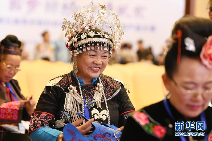 當(dāng)日,第五屆貴州省婦女特色手工技能暨創(chuàng)新產(chǎn)品大賽在貴陽(yáng)市舉行。來自貴州省各地的繡娘和染娘分別就民族刺繡、民族蠟染、創(chuàng)新產(chǎn)品設(shè)計(jì)等項(xiàng)目進(jìn)行比拼,她們?cè)诂F(xiàn)場(chǎng)飛針走線、巧手繪圖,展示貴州婦女特色手工之美。