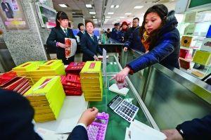 為防止一搶而空,今年郵票銷售公布了網(wǎng)點的配額:每天每個網(wǎng)點約供應(yīng)1500套,每人限購一套,售完為止。為了維持現(xiàn)場秩序,東區(qū)郵票公司從前一天晚上就開始發(fā)放號碼,憑號碼牌買票,避免出現(xiàn)插隊的情況。