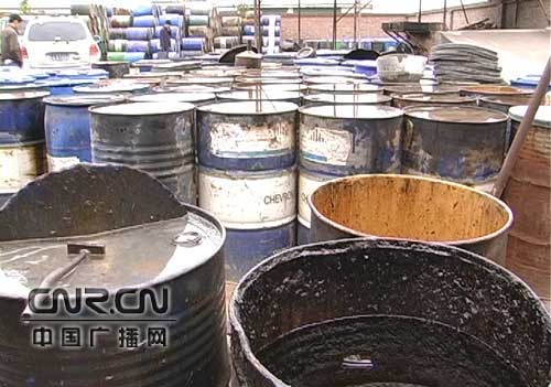 在這家私營的小化工廠內(nèi),工業(yè)廢油隨處可見