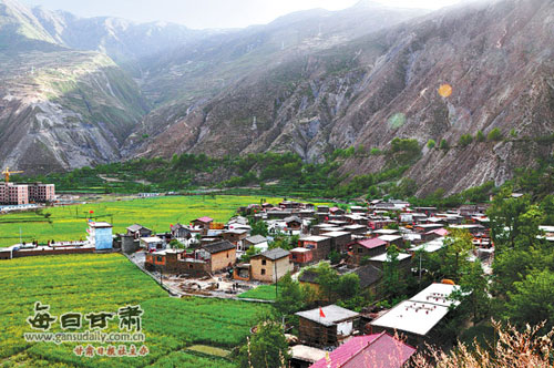 中廣網蘭州4月30日消息 綠樹、良田、新居,舟曲縣峰迭鄉(xiāng)壩子村美麗安詳。經過災后重建,壩子村面貌煥然一新。記者 洪文泉 攝