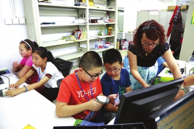 活動中,小管理員們都表現(xiàn)出積極、認真的態(tài)度。經(jīng)過崗前培訓,在圖書館工作人員的指導下,孩子們學習圖書館工作的基本知識,熟悉館藏圖書的分類和布局,對圖書分類有了初步的了解,學會了按正確的分類排架、在網(wǎng)上續(xù)借圖書、查找所需要圖書資料,走上了工作崗位,協(xié)助圖書管理員進行圖書借閱、上架、整理等系列工作。在服務廣大小讀者的同時,小管理員們學會了接受小讀者咨詢、維持閱覽秩序,引導文明借閱,并在管理的過程中與其他小讀者進行交流、溝通,還把他們認為好看的圖書推薦給來館小讀者及家長,愿為他人服務的辛苦和快樂,圖書借閱處每天都活躍著他們忙碌的身影!白尯⒆釉谑罴匐x開電腦、電視,在課本作業(yè)之外可以學習到更多知識,這樣的活動真的應該多舉辦一點!币晃缓⒆蛹议L說道。