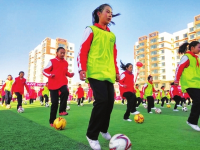 11月30日,2017年國際足聯(lián)——追夢女孩足球節(jié)活動在蘭州新區(qū)第五小學拉開帷幕。200多名3至6年級的女學生在老師的指導下,通過開展手拉手傳球接力賽、協(xié)調(diào)性控球、射門接力賽、趣味顛球賽、五人制足球比賽、親子足球賽等活動,在綠茵場上享受足球運動帶來的快樂。