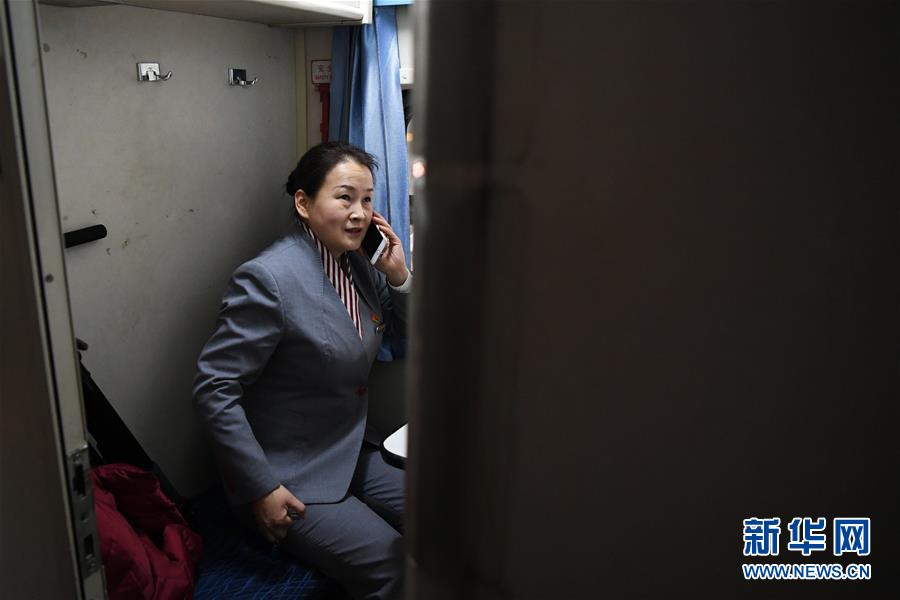 任亞娟在列車上給丈夫李全忠打電話(2月9日攝)。利用工作間隙,兩人會彼此打個電話,詢問工作生活的情況,籌劃團聚時的安排。 “全:我走車了,今年過年又見不著了,家里的衛(wèi)生已經(jīng)打掃,愛你!”這是任亞娟給丈夫李全忠的留言,她知道,等到丈夫下班回家看到這條留言的時候,她已經(jīng)在蘭州到成都的列車上了。同在中國鐵路蘭州局集團有限公司蘭州客運段工作的任亞娟和丈夫李全忠都是車隊隊長,負責不同的線路,兩人從1995年結婚以來,因為工作的原因,聚少離多。兩人將對彼此的牽掛和思念寫在紙條上,放在回家一進門就能看見的位置,這一寫就是20多年!翱爝^年了,別忘了給老人買年貨!薄白罱禍,我給你買了毛衣,記得穿上!薄把狙荆ㄋ麄兣畠豪钭课档男∶┮呀(jīng)送回老家,你安心工作不要惦記……”相比現(xiàn)在的短信、微信等“一點即到”的方式,任亞娟和李全忠更習慣看著對方在留言本上的一筆一劃,感受著這個家的溫暖。如今,他們的女兒丫丫也成了一名列車員。今年,一家三口都承擔著春運任務,將在不同的列車上度過春節(jié)。臘月二十三這一天,一家三口一起度過了“小年夜”,算是提前過個“團圓年”。第二天一大早,任亞娟和女兒丫丫就分別奔赴崗位。而李全忠也在當晚出乘前,在家里留了言,寫著“娟:我給你包了你最愛吃的韭黃餡餃子,放在冰箱里,等你回來一起吃! 新華社記者 陳斌 攝