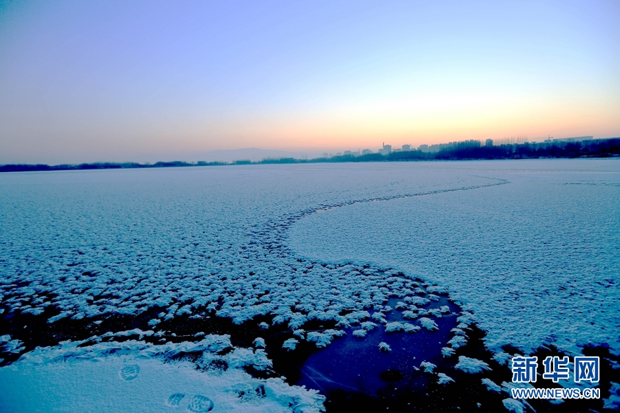 •      受近日寒潮影響,甘肅張掖迎來降雪降溫,濱河新區(qū)蘆水灣景區(qū)湖水結(jié)冰。冰雪交融自然形成各種韻律十足的美麗圖案,成為冬日一景。新華網(wǎng)發(fā)(陳禮 攝)