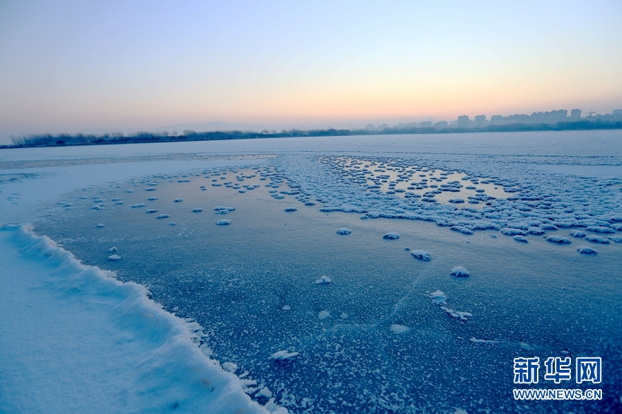 •      近日受寒潮影響,甘肅張掖迎來降雪降溫,濱河新區(qū)蘆水灣景區(qū)湖水結(jié)冰。冰雪交融自然形成各種韻律十足的美麗圖案,成為冬日一景。新華網(wǎng)發(fā)(陳禮 攝)