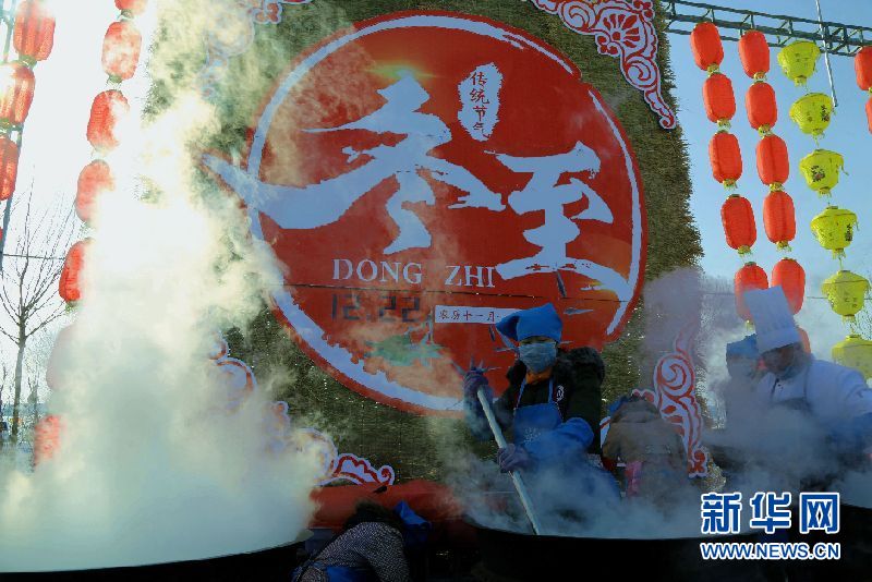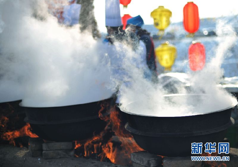 正在烹制的山丹“牛娃子飯” 新華網蘭州12月24日電(陳楚培)12月22日,是二十四節(jié)氣中的冬至。在甘肅省張掖市山丹縣近郊,由10000斤面、18頭豬以及大量蔬菜在68口鍋中烹制而出的“牛娃子飯”讓當?shù)厝罕姾湍矫鴣淼挠慰痛箫柨诟,大家一同祈福來年風調雨順!跋嗉s魅力祁店 傳承民俗經典”第四屆祁店冬至民俗文化節(jié)也就此拉開了序幕。 -
