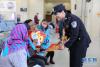 1月21日,蘭州鐵路公安局武威公安處民警為小朋友送上文具用品。新華網(wǎng)發(fā)(陳輝 攝) -