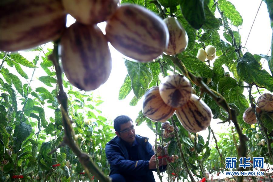 春節(jié)臨近,甘肅省敦煌市農(nóng)民加強溫室果蔬田間管理,豐富節(jié)日市場“菜籃子”。