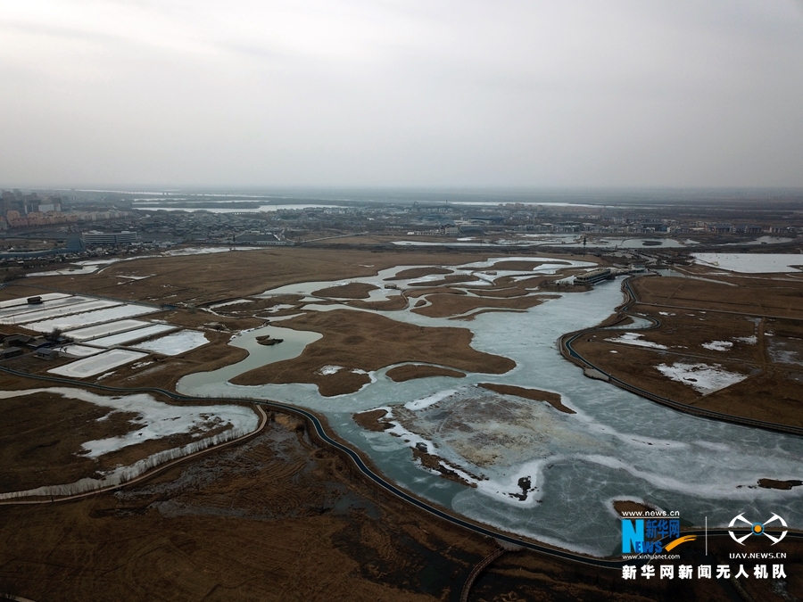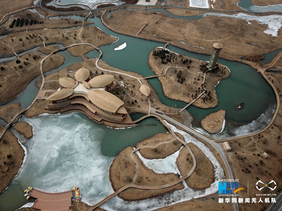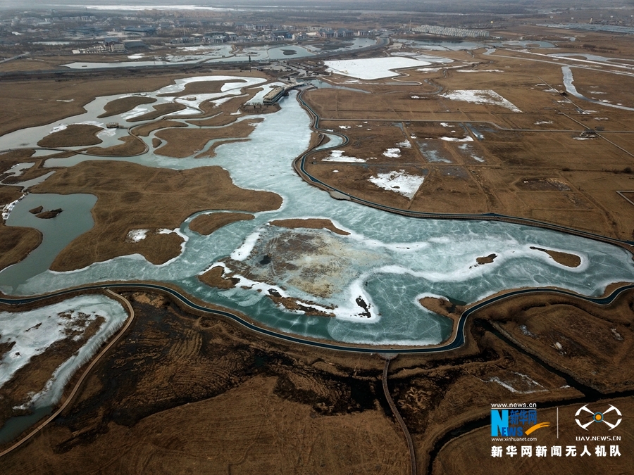 這是航拍鏡頭中的甘肅張掖國家濕地公園初春景色。立春以來,天氣回暖,位于河西走廊的甘肅張掖國家濕地公園里,沉寂了一個冬天的冰雪逐漸消融,星羅棋布的湖泊再現(xiàn)碧波,洋溢著大地萌蘇的盎然生機。新華網(wǎng)發(fā) (成學磊 攝)