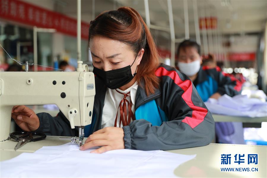 3月11日,在甘肅省臨夏回族自治州臨夏縣翠夢飛服裝加工有限責任公司生產(chǎn)車間內(nèi),工人在制衣。翠夢飛服裝加工有限責任公司共有生產(chǎn)工人45人,其中22人為臨夏縣建檔立卡貧困戶,11人為殘疾人士。新華社發(fā)(杜哲宇攝)