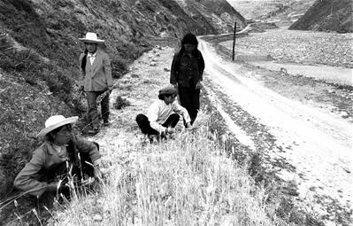 1996年,隴南市宕昌縣車?yán)l(xiāng)農(nóng)民在全鄉(xiāng)唯一的對(duì)外通道——僅能容納一輛汽車通過(guò)的土路旁勞作。新華社圖片