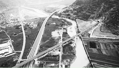 2016年,蘭渝鐵路隴南境內(nèi)漢王特大橋(右)與高速公路、國(guó)道立體交叉。新華社圖片