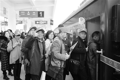 2016年12月26日,蘭渝鐵路岷縣至廣元段正式開(kāi)通運(yùn)營(yíng),出行旅客在隴南火車站站臺(tái)排隊(duì)上車。 新華社圖片
