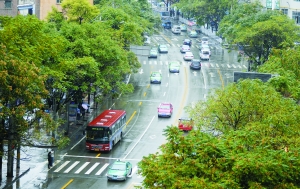 隨后,記者在西關(guān)什字乘坐1路公交車感受“世界無車日”當(dāng)日的交通狀況。公交車從西關(guān)什字出發(fā)后道路比較通暢,公交車車速也比往日快了不少,到達東方紅廣場附近路段及盤旋路路段時,出現(xiàn)了短暫的車輛擁堵現(xiàn)象,但在交警的指揮下很快就被疏通!爸饕菃坞p號限行昨天(21日)開始實行,使這兩天車輛明顯少了,道路明顯通暢了很多,前段時間的周一早高峰根本不可能跑這么快!碑(dāng)被問及是否知道“世界無車日”時,1路公交車司機說:“世界無車日?聽說過,但不知道是哪一天!